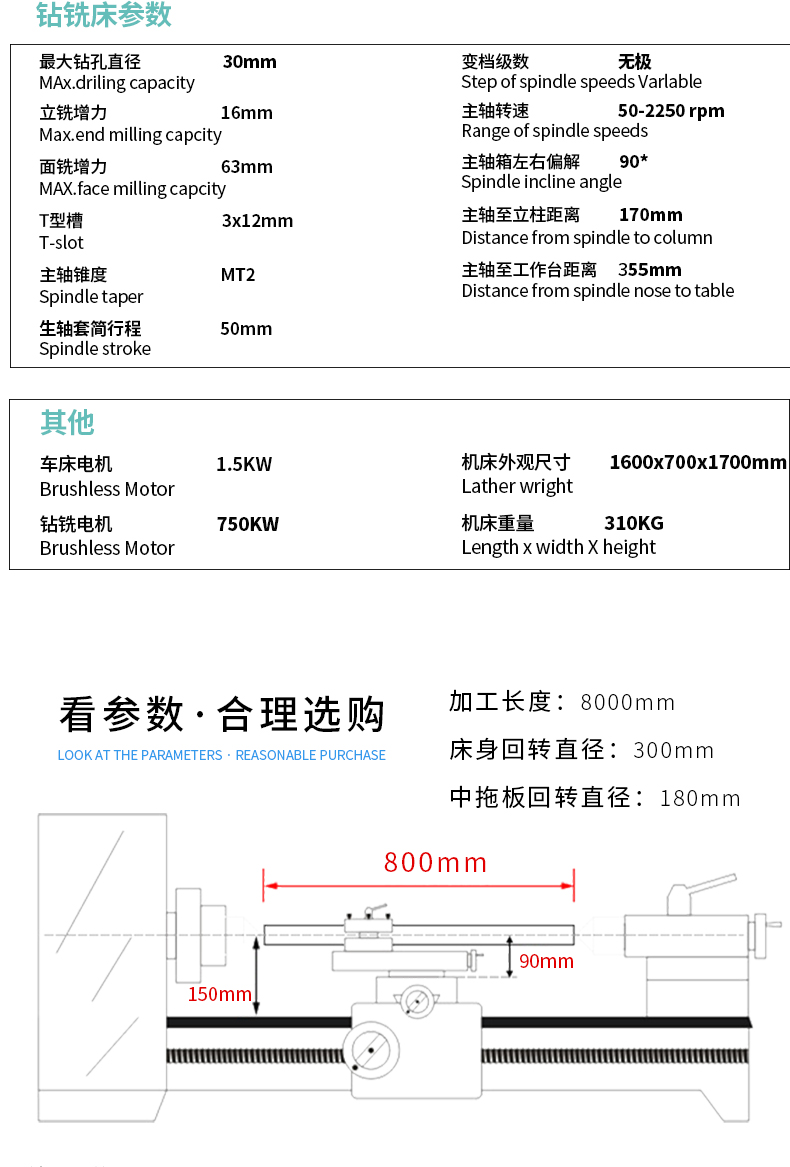 夢鷹MY3090三合一車鉆銑復(fù)合車床